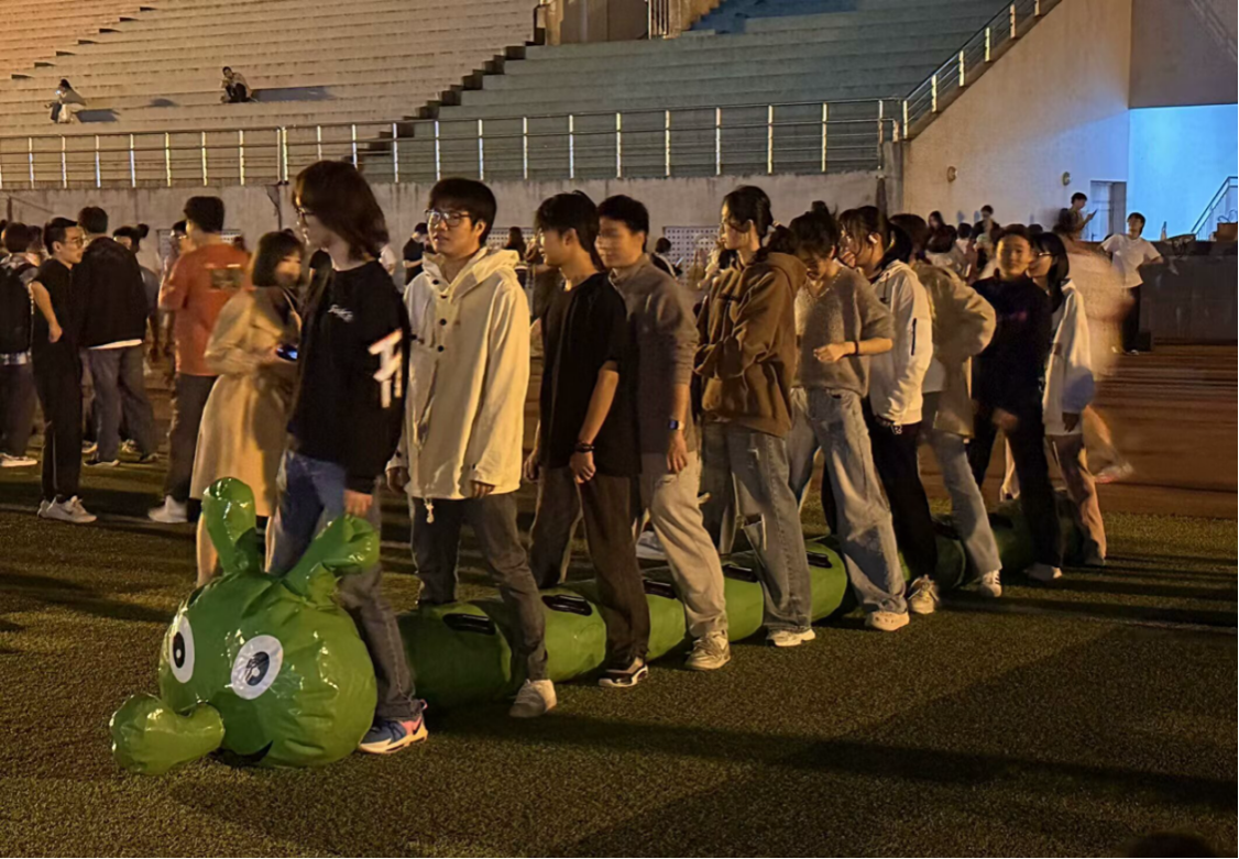 其他集体项目的训练现场则是一片欢声笑语,又不乏紧张激烈。在毛毛虫比赛训练中,每组队员们紧紧抓牢“毛毛虫”道具,步伐一致,齐心协力向前冲刺。大家一边喊着口号,一边奋力奔跑,充分展现了团队的协作精神。拔河训练时,队员们个个摩拳擦掌,双手紧握绳索,身体后倾,展现出强大的力量与坚韧的毅力。在一次次模拟比赛中,他们不断调整战术,增强团队默契。跳绳训练现场,五彩的跳绳在空中飞速旋转,同学们身轻如燕,快速地跳跃着。单人跳绳的同学追求速度与技巧,多人跳绳的团队则注重配合与节奏,大家都在为取得优异成绩而努力。