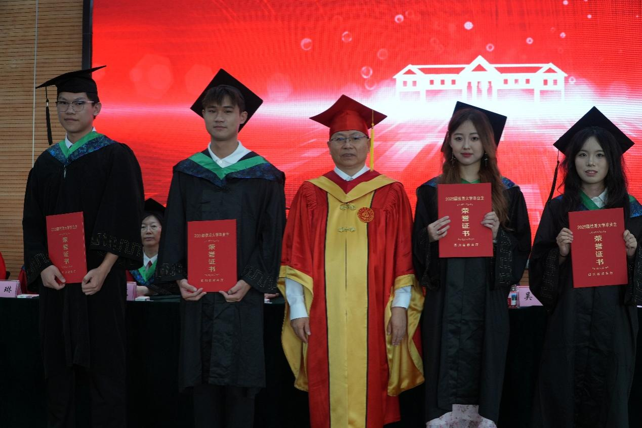 草学2021级硕士研究生周敏代表毕业研究生发言。她代表全体硕士毕业生向提供前沿学术平台的母校表达感谢,感慨草学教会同学们以科学理性守护每一株小草的生长密码,用智慧平衡生态保护与产业发展的天平。