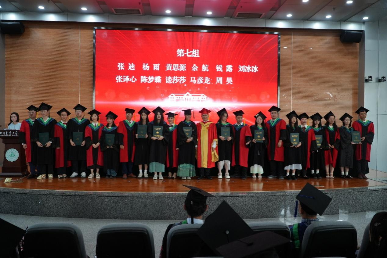 院长黄琳凯教授宣读校学位评定委员会关于授予硕士学位、学士学位的决定。主席台就坐的领导和老师为151名获得学位的毕业生拨穗授位并颁发证书。