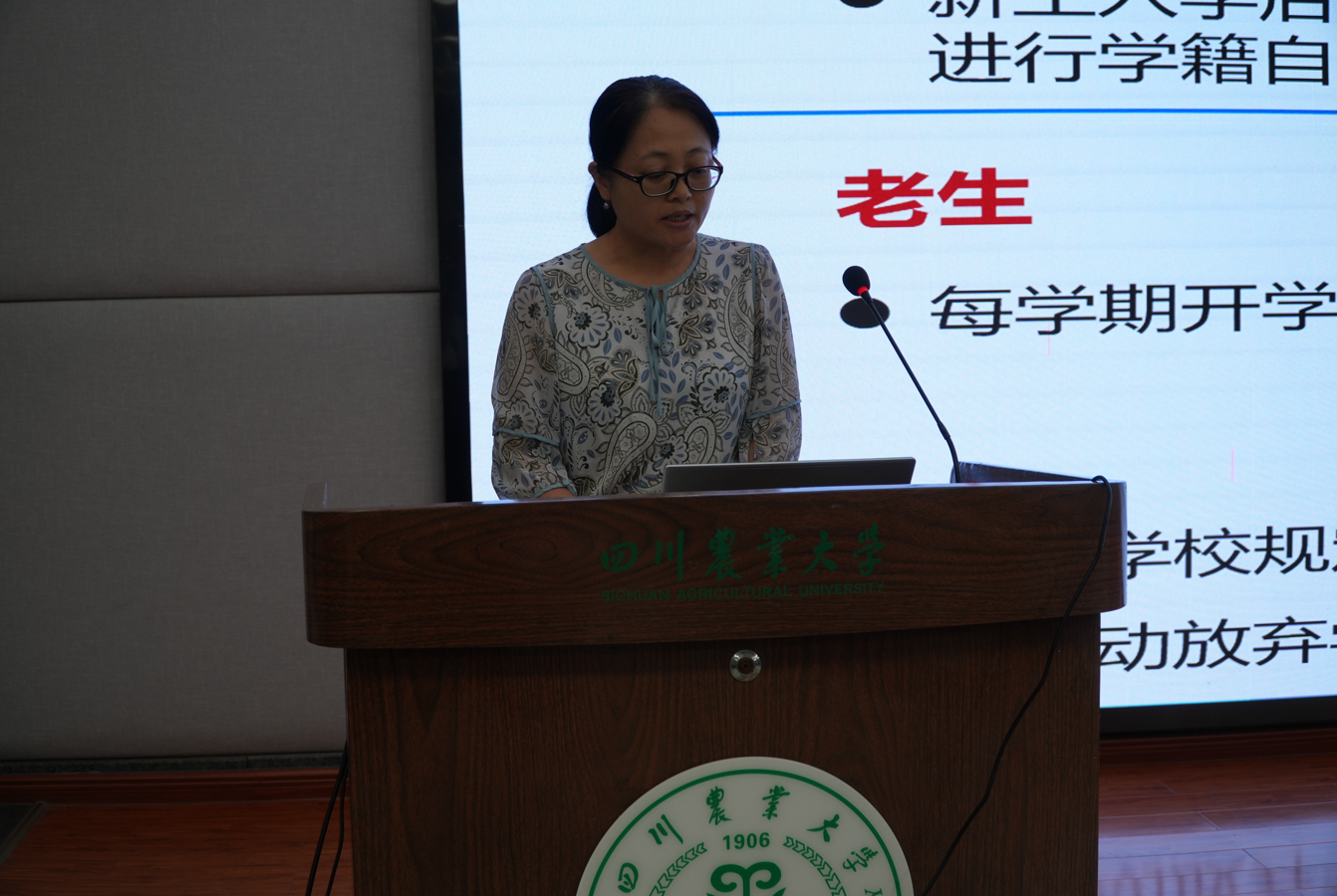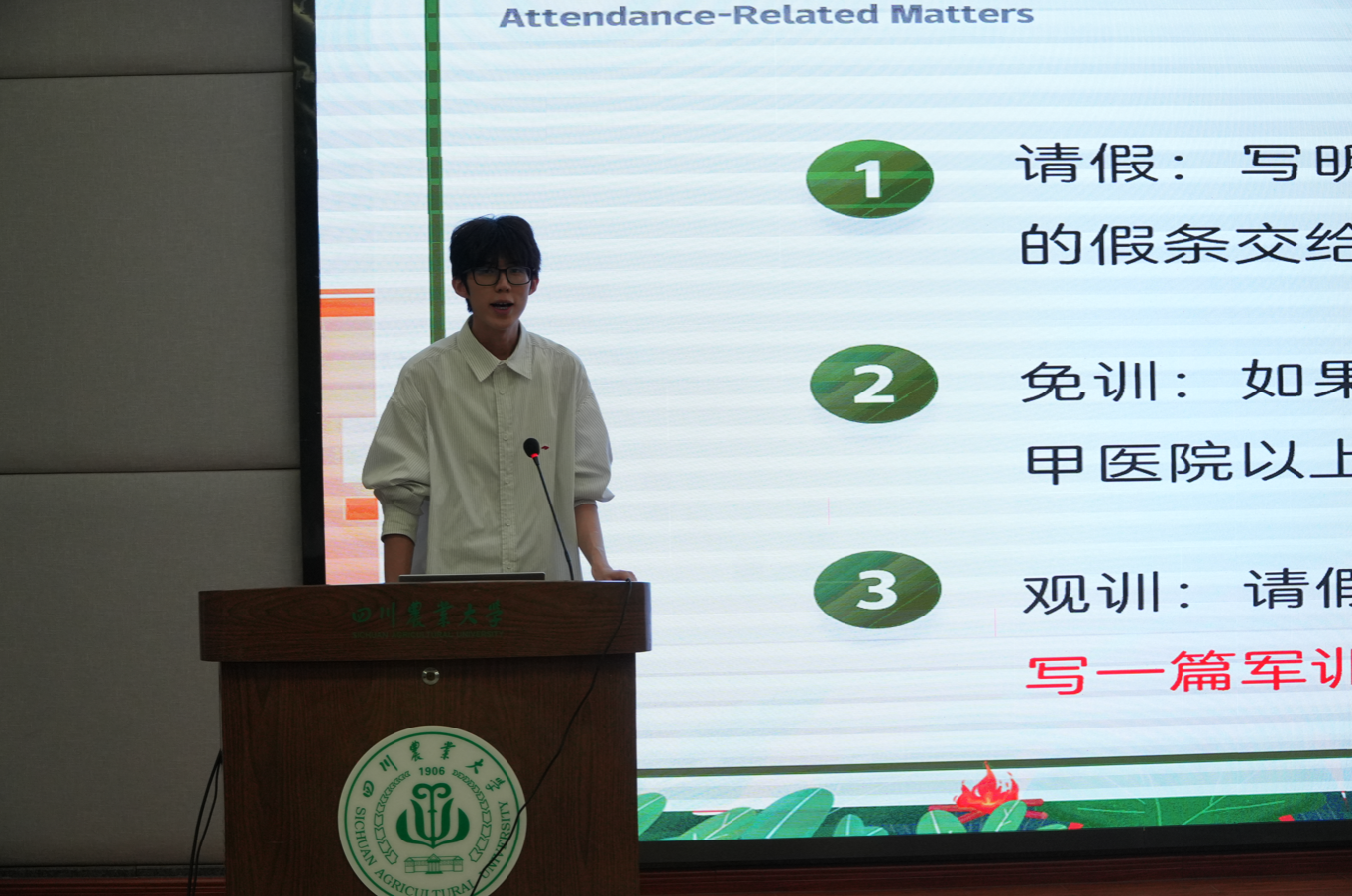 行政办王莉以及党委办罗璐曦、曾杰、肖钧友老师分别围绕教务系统使用、学工系统使用、学生管理办法、学生奖励资助政策、军训事宜安排和节能减排倡议等内容面向全体2025级本科新生开展入学教育。