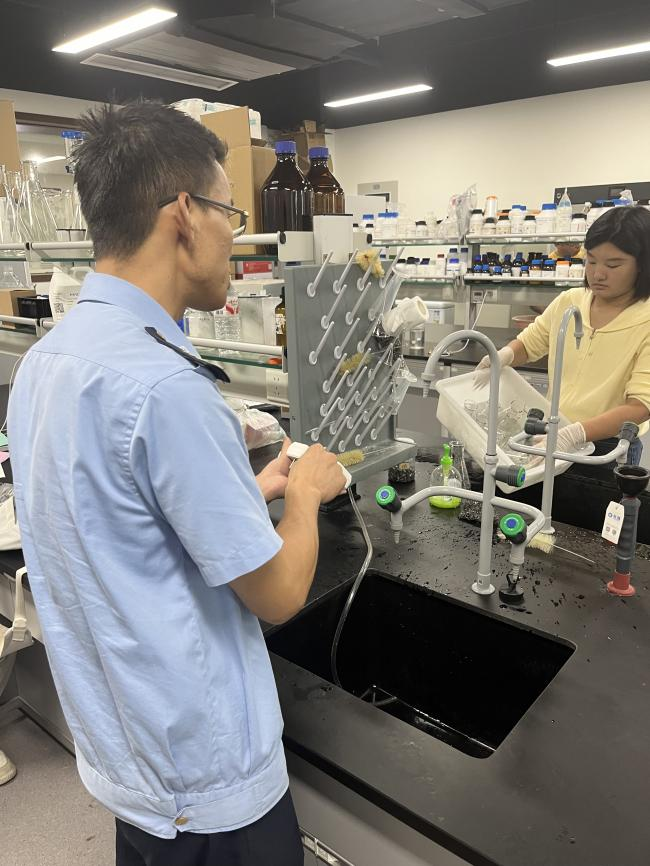 特别邀请朱建教官前往实验室,针对仪器用电规范、应急通道畅通等关键环节现场指导。教官逐一排查潜在隐患,并提出针对性整改建议,进一步夯实新生实验室安全实操认知。