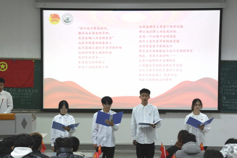 团委组织部联合五个小班团支部,在4A-103教室成功举办“深悟全会精神,奋进崭新征程”示范性班团活动。全院160余名团员青年齐聚一堂,通过理论领学、文化浸润、实践赋能、榜样引领四大板块的系列活动,展现了新时代青年与党同心、与国同行的精神风貌。