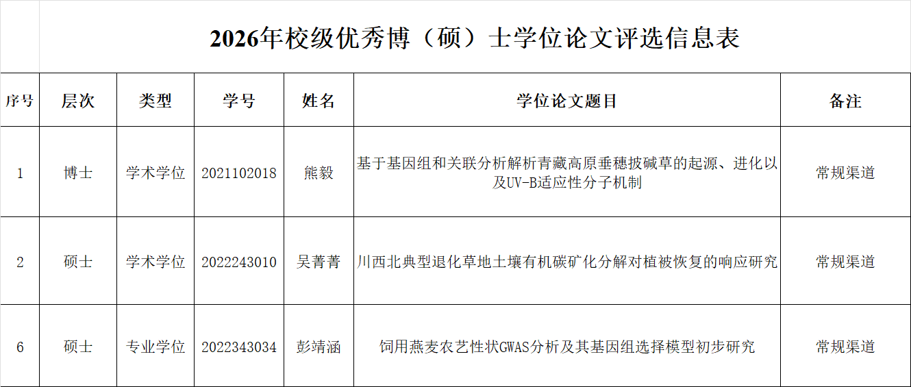 2026年优秀博(硕)士学位论文评选推荐名单公示