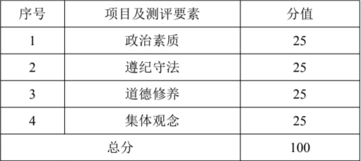 德育素质成绩满分共100分,评议项目及分值见下表。