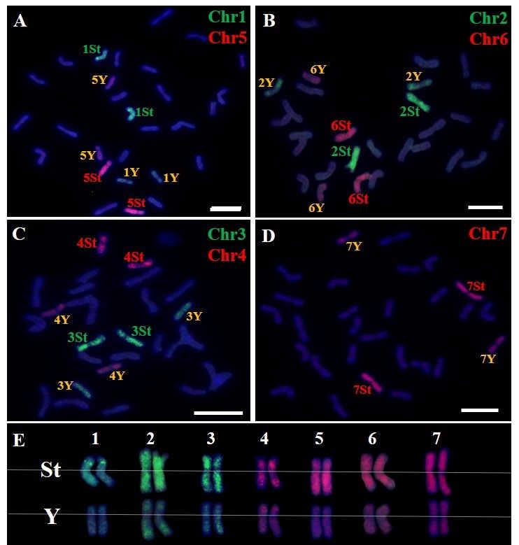 2.Chen C, Zhang X, Li YL, Zou BC, Xiao H, Han YS, Yang XZ, Wu DD, Sha LN, Yang CR, Liu SQ, Cheng YR, Wang Y, Kang HY, Fan X, Zhou YH, Zhang P, Chen ZH, Zhang T*, Zhang HQ*. Chromosome-specific painting reveals the origin of the Y genome and chromosome rearrangements of the St genome in Triticeae. Plant Physiology,2024,196: 870-882(一区Top, IF: 7.4)