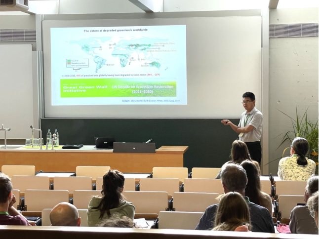 我院草地资源与生态系白彦福博士应邀参会并作了题为“Decade-long active restoration of extremely degraded alpine grasslands”的口头报告,重点介绍了我国青藏高原退化草地恢复及其土壤有机碳周转和稳定性维持与调控机制,提出了未来通过科学的人工恢复干预提升高寒退化草地碳汇的技术方案,引起了与会代表的广泛兴趣和热烈讨论。
