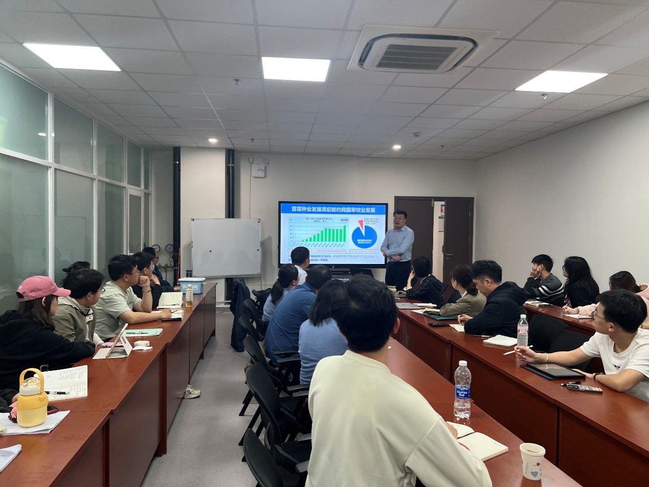 报告中,林浩研究员系统性地讲解了苜蓿基因资源的挖掘技术及遗传改良策略,分享了其团队在该领域的重要研究成果,并探讨其对草牧业发展的促进作用。报告内容切合实际,兼具理论与实践,为与会师生提供了新的学术视角与研究启发。会议结束后,参会师生积极与林浩研究员展开交流与讨论,结合自身研究领域,为未来科研工作带来了更多的思路和启示。