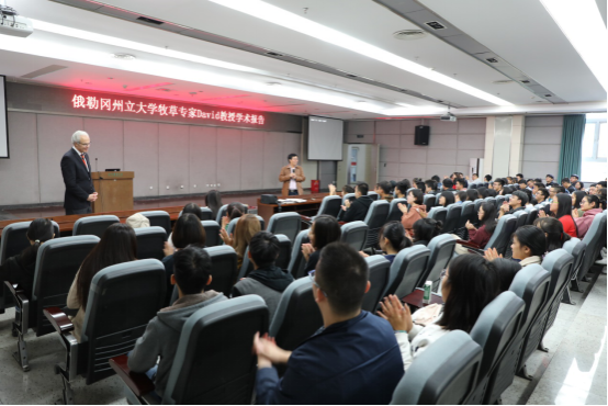 David教授系统地讲解了美国科学研究、教育和推广体系的结构构成及学习方式方法,并以俄勒冈州立大学发展为例,生动形象地讲授了牧草在社会地位的重要性,及美、中高等教育体系的差异,并对学生申请美国研究生教育提供了一定的信息和指导。David教授强调了农业推广在大学中的重要性,呼吁教学、研究一定要理论结合实际,学会与他人合作,共同谋求发展的理念。