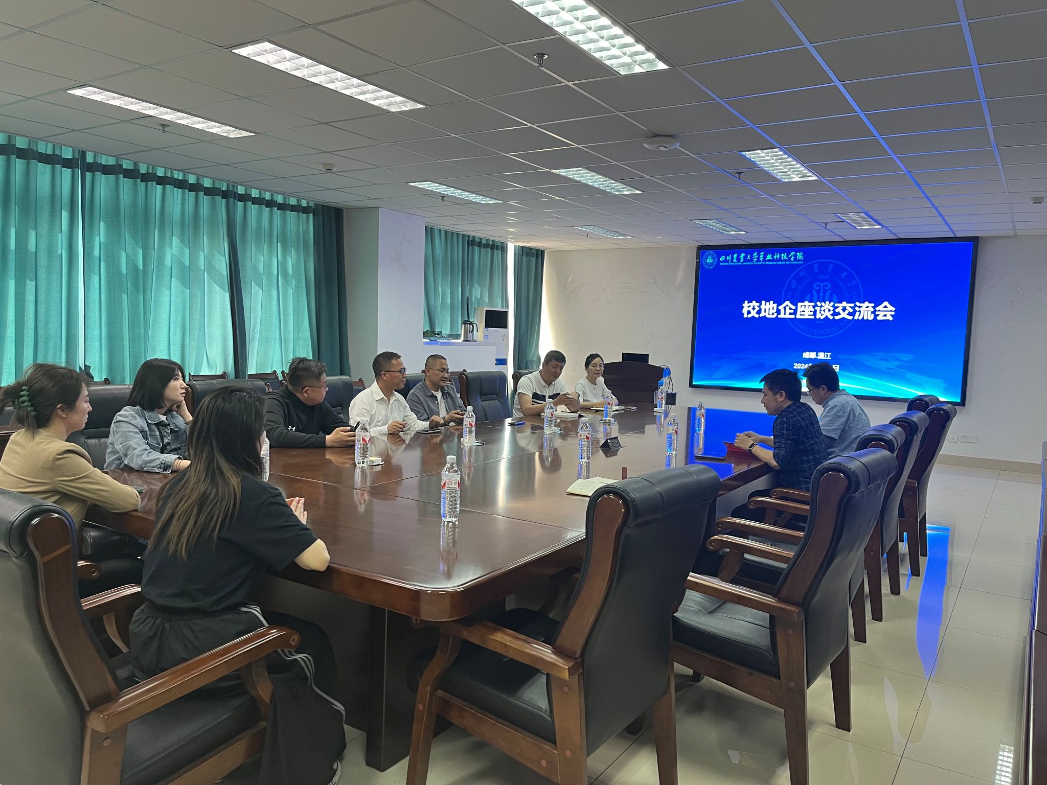顾晗介绍了园区职能职责和来校交流原因,希望能够通过此次机会,搭建平台、增进了解,促成校企地合作。蒙草生态环境(集团)股份有限公司独立股东,南方中心总经理张瑞、副总经理宋嘉鑫、西南市场合伙人唐廷祥分别介绍了公司运营基本情况、核心业务、合作意向等,期待通过此次交流,初步建立联系,便于后期在科研合作、技术指导、就业实践等方面开展深度合作。